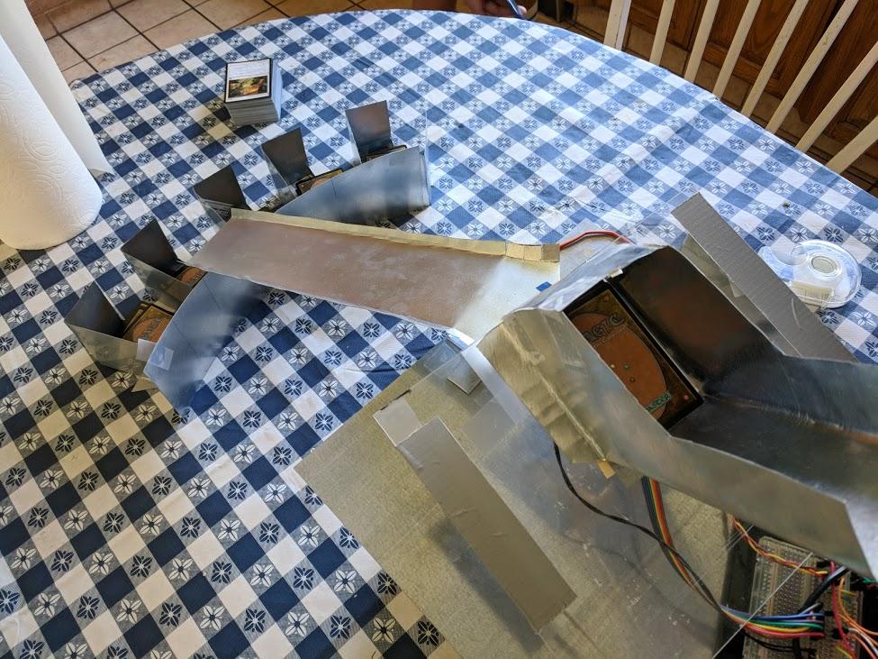 Controlled by an Arduino, this machine sorts Magic the Gathering cards by color.