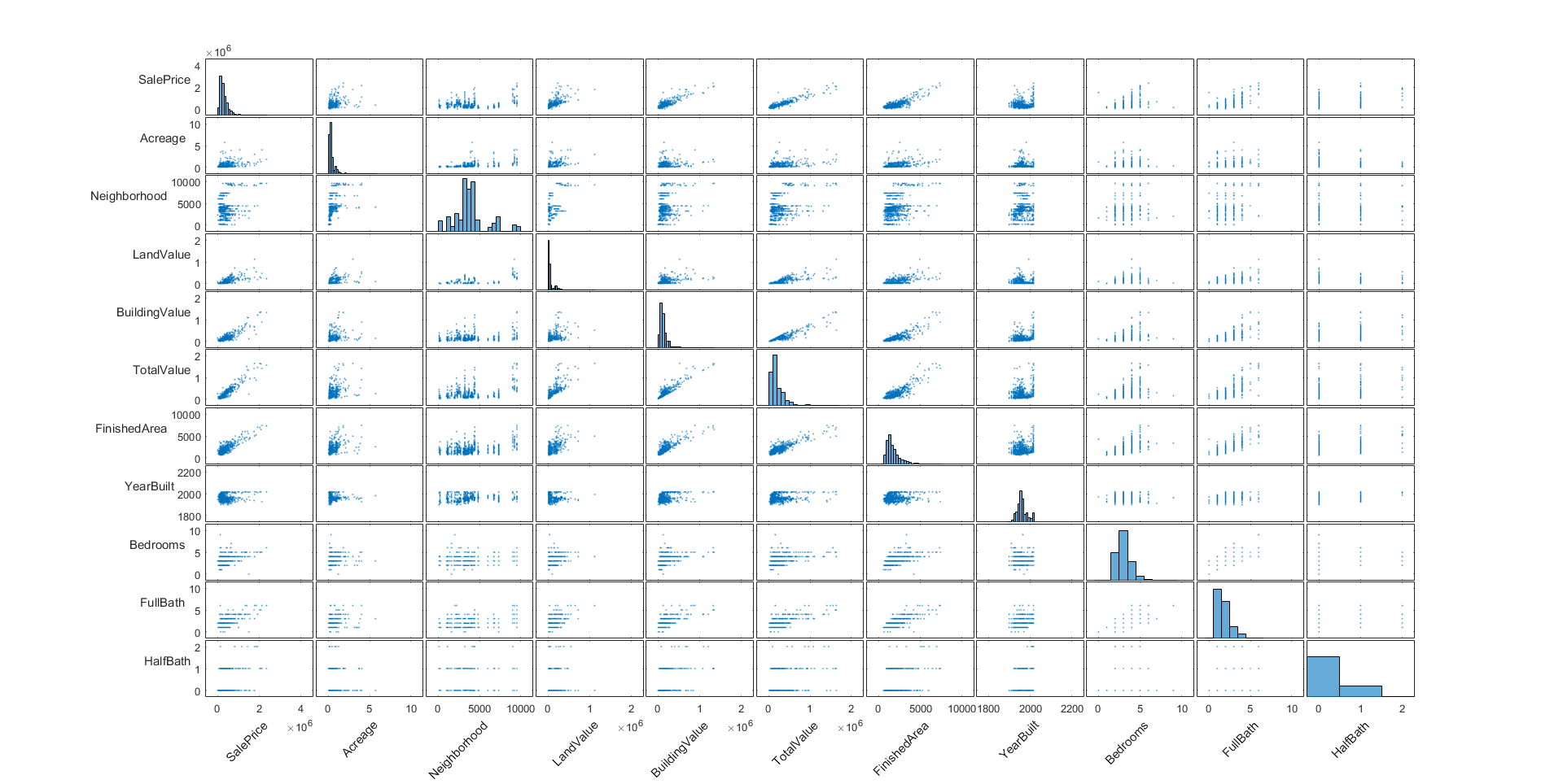 Linear regression and gradient descent on a training set to predict prices in the data set. Also a scatter matrix of the available variables to see a visual representation of correlation.