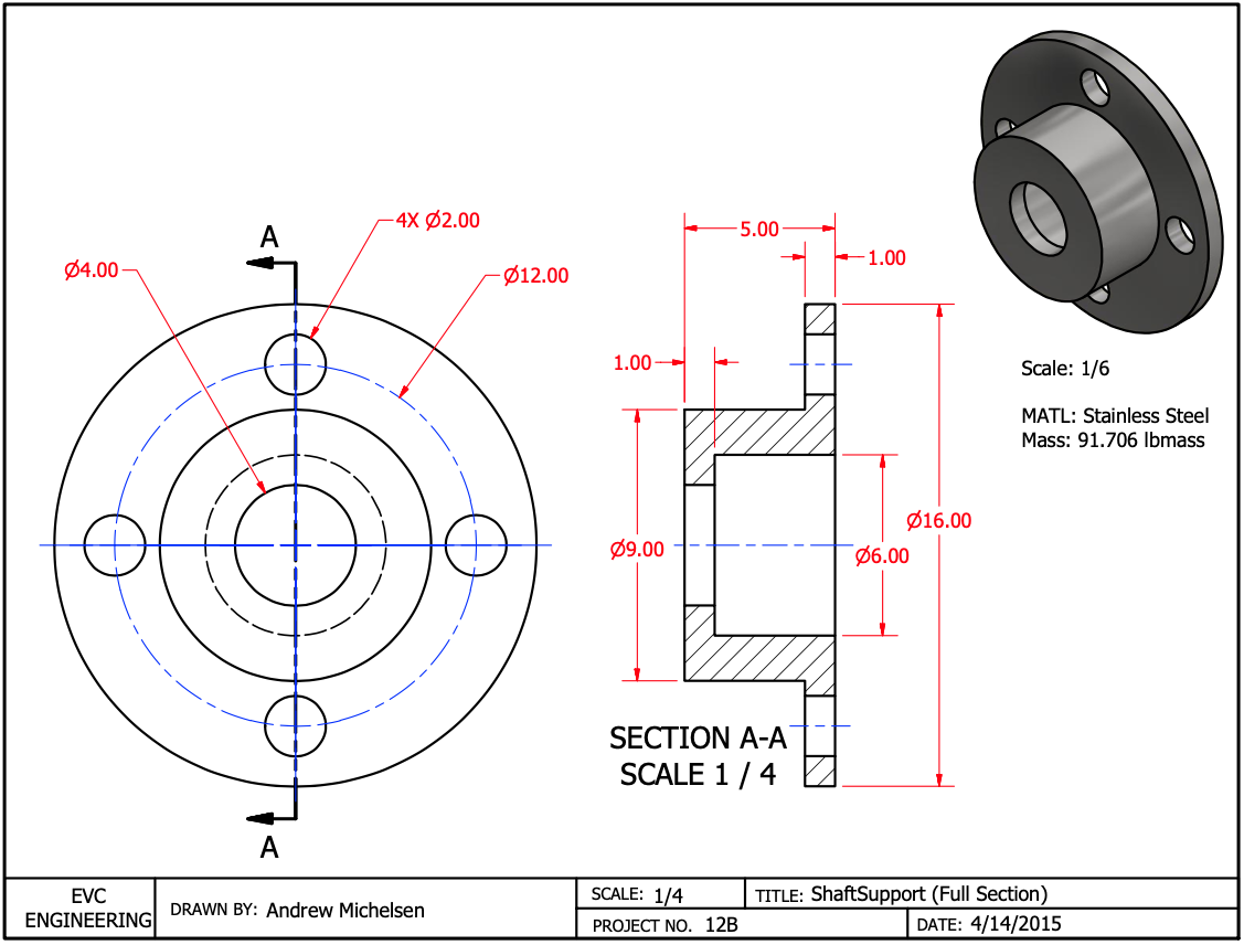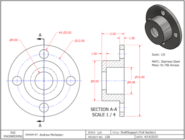 CAD: Fully-constrained simple mechanical models & drawings in Autodesk Inventor.