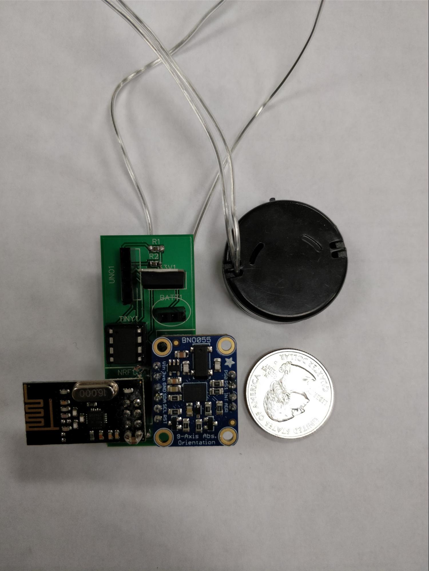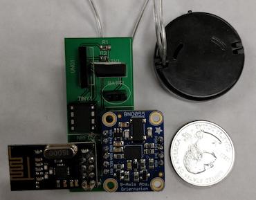 Wearable sensors collect motion and heartbeat data, and wirelessly report to a nearby computer for recording or processing. A prototype.